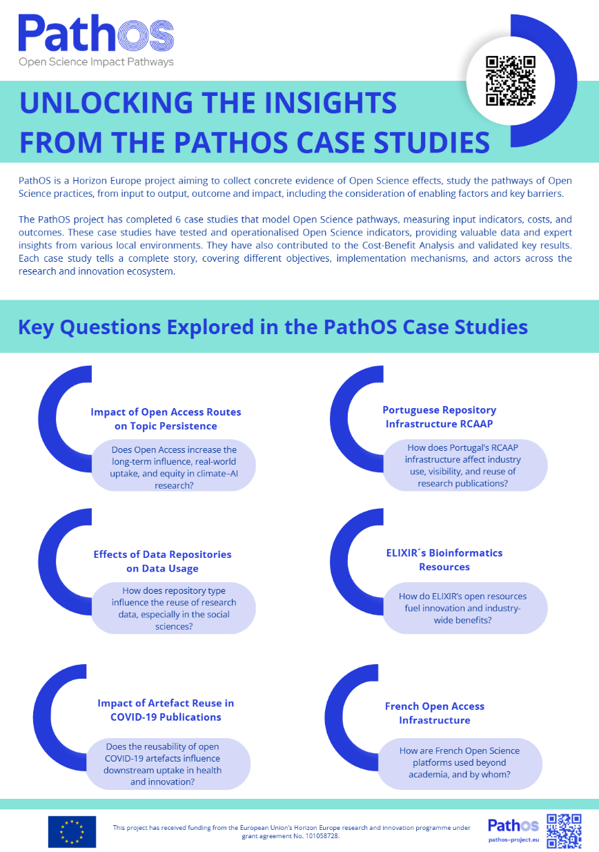 The PathOS project has completed 6 case studies that model Open Science pathways, measuring input indicators, costs, and outcomes. These case studies have tested and operationalised Open Science indicators, providing valuable data and expert insights from various local environments. They have also contributed to the Cost-Benefit Analysis and validated key results. Each case study tells a complete story, covering different objectives, implementation mechanisms, and actors across the research and innovation ecosystem.